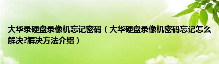 大華錄硬盤錄像機(jī)忘記密碼(大華硬盤錄像機(jī)密碼忘記怎么解決?解決方法介紹)