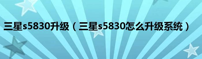 三星s5830升級(jí)(三星s5830怎么升級(jí)系統(tǒng))