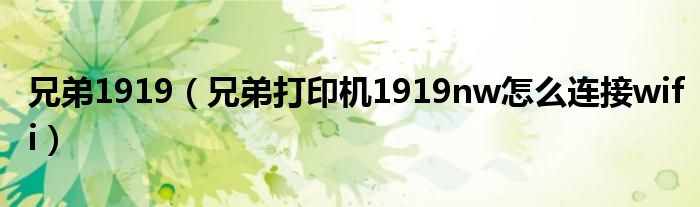 兄弟1919(兄弟打印機(jī)1919nw怎么連接wifi)