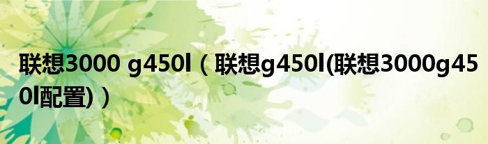 聯(lián)想3000 g450l(聯(lián)想g450l(聯(lián)想3000g450l配置))
