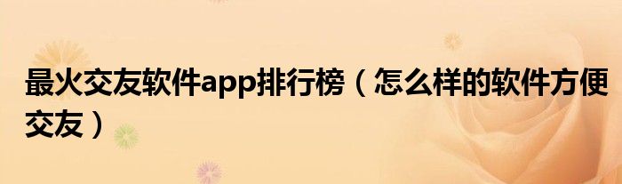 最火交友軟件app排行榜(怎么樣的軟件方便交友)