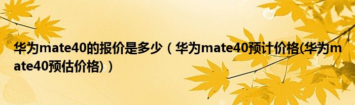 華為mate40的報價是多少(華為mate40預計價格(華為mate40預估價格))
