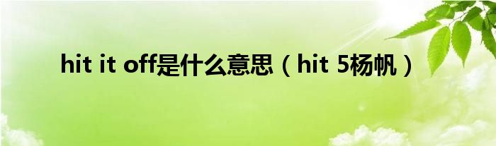 hit it off是什么意思,hit 5楊帆這個(gè)很多人還不知道,小飛來為大家解答以上的問題?,F(xiàn)在讓我們一起來看看吧!