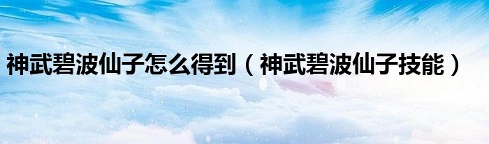 大家好,小飛來為大家解答以上的問題。神武碧波仙子怎么得到,神武碧波仙子技能這個(gè)很多人還不知道,現(xiàn)在讓我們一起來看看吧!