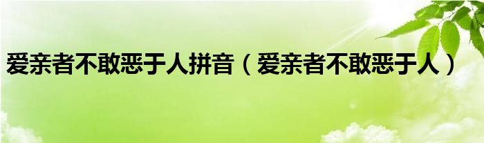 愛親者不敢惡于人拼音(愛親者不敢惡于人)