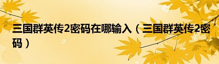 三國群英傳2密碼在哪輸入(三國群英傳2密碼)