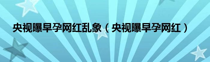 央視曝早孕網紅亂象(央視曝早孕網紅)
