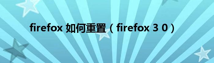 firefox 如何重置,firefox 3 0很多人還不知道,樂(lè)樂(lè)來(lái)為大家解答以上問(wèn)題,現(xiàn)在讓我們一起來(lái)看看吧!