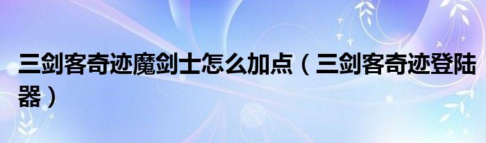 三劍客奇跡魔劍士怎么加點(diǎn)(三劍客奇跡登陸器)