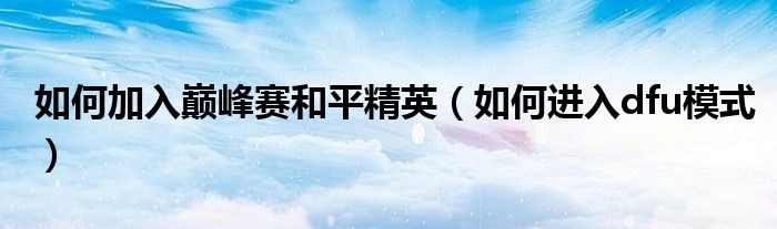 如何加入巔峰賽和平精英(如何進(jìn)入dfu模式)