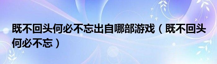 既不回頭何必不忘出自哪部游戲(既不回頭 何必不忘)