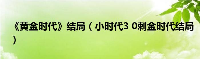 《黃金時(shí)代》結(jié)局(小時(shí)代3 0刺金時(shí)代結(jié)局)