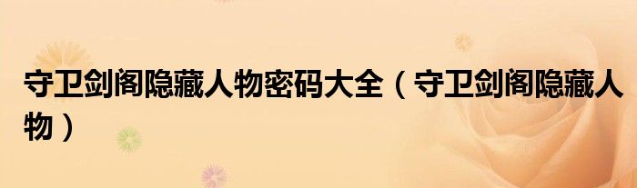 守衛(wèi)劍閣隱藏人物密碼大全(守衛(wèi)劍閣隱藏人物)