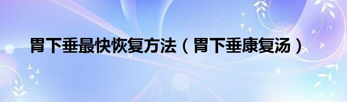 胃下垂最快恢復(fù)方法(胃下垂康復(fù)湯)