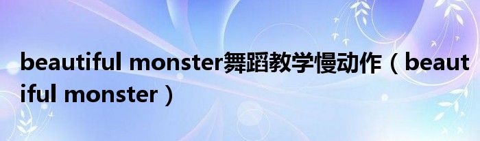 beautiful monster舞蹈教學(xué)慢動(dòng)作(beautiful monster)