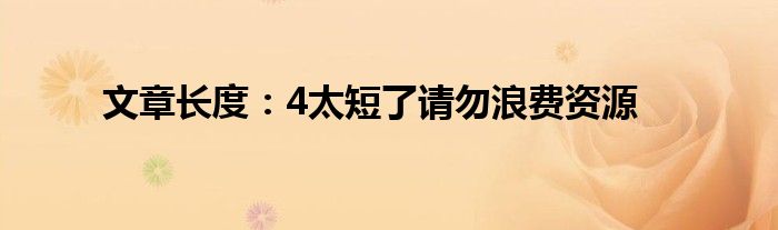 關(guān)于文章長度:4太短了請勿浪費(fèi)資源這個很多人還不知道,今天菲菲來為大家解答以上的問題,現(xiàn)在讓我們一起來看看吧!