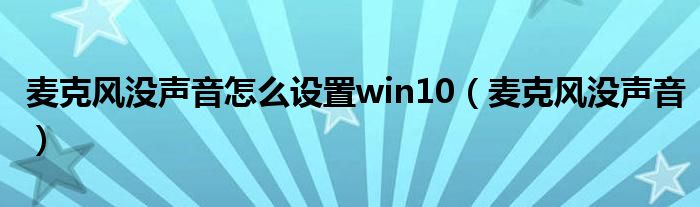 麥克風(fēng)沒聲音怎么設(shè)置win10(麥克風(fēng)沒聲音)