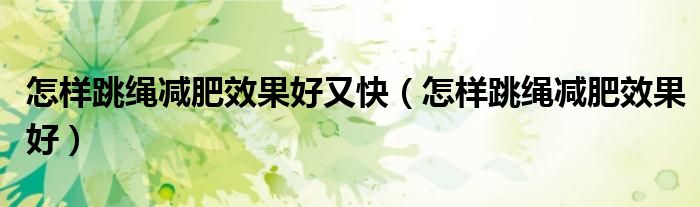 怎樣跳繩減肥效果好又快(怎樣跳繩減肥效果好)