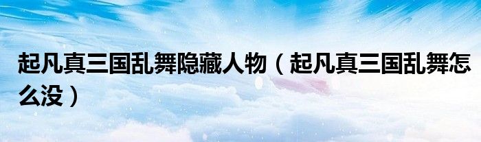 起凡真三國(guó)亂舞隱藏人物(起凡真三國(guó)亂舞怎么沒(méi))