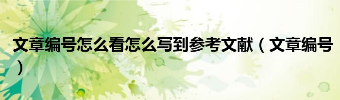 文章編號怎么看怎么寫到參考文獻(文章編號)