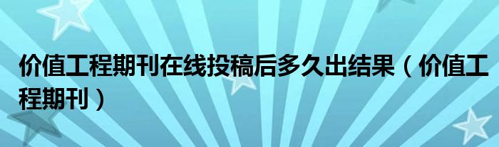 價(jià)值工程期刊在線投稿后多久出結(jié)果(價(jià)值工程期刊)