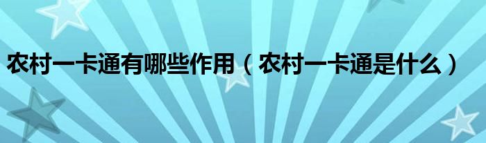 農(nóng)村一卡通有哪些作用(農(nóng)村一卡通是什么)