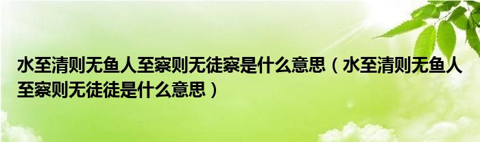 水至清則無魚人至察則無徒察是什么意思(水至清則無魚人至察則無徒徒是什么意思)
