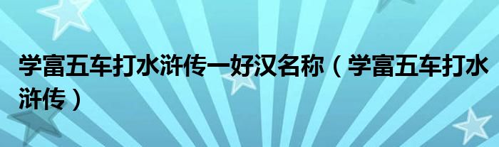 學富五車打水滸傳一好漢名稱(學富五車打水滸傳)