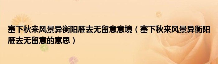 塞下秋來風(fēng)景異衡陽雁去無留意意境(塞下秋來風(fēng)景異衡陽雁去無留意的意思)