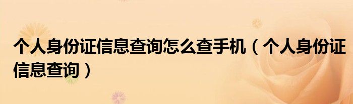 個人身份證信息查詢怎么查手機(個人身份證信息查詢)