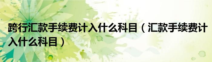 跨行匯款手續(xù)費計入什么科目(匯款手續(xù)費計入什么科目)