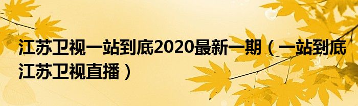 江蘇衛(wèi)視一站到底2020最新一期(一站到底江蘇衛(wèi)視直播)