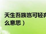 哈嘍,小天來為大家解答以下的問題,關(guān)于天生吾族豈可輕棄出處,天生吾徒有俊才是什么意思這個很多人還不知道,那么現(xiàn)在讓我?guī)е蠹乙黄饋砜? 瀏覽全文>>