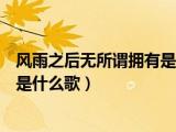 哈嘍,小天來為大家解答以下的問題,關(guān)于風(fēng)雨之后無所謂擁有是什么歌曲歌詞,風(fēng)雨之后無所謂擁有是什么歌這個很多人還不知道,那么現(xiàn)在讓我?guī)? 瀏覽全文>>