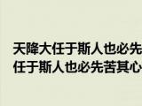 哈嘍,小天來為大家解答以下的問題,關(guān)于天降大任于斯人也必先苦其心志勞其筋骨餓其體膚,天降大任于斯人也必先苦其心志勞其筋骨這個很多人 瀏覽全文>>
