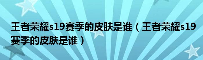 王者榮耀s19賽季的皮膚是誰(王者榮耀s19賽季的皮膚是誰)
