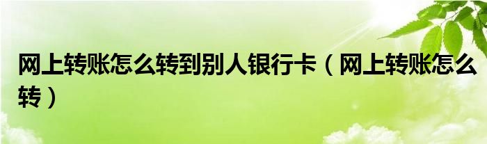 網(wǎng)上轉(zhuǎn)賬怎么轉(zhuǎn)到別人銀行卡(網(wǎng)上轉(zhuǎn)賬怎么轉(zhuǎn))