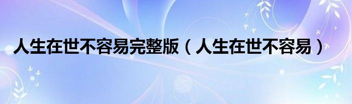 大家好,慧慧來為大家解答以上問題,人生在世不容易完整版,人生在世不容易很多人還不知道,現(xiàn)在讓我們一起來看看吧!
