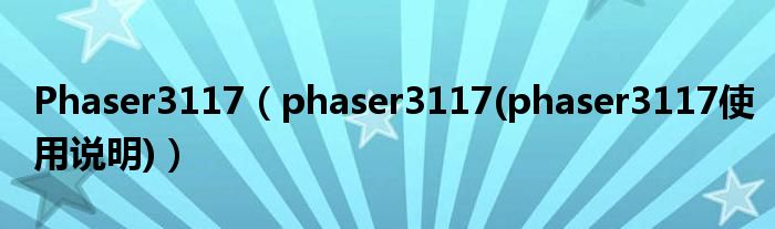 大家好,小常來(lái)為大家解答以上問(wèn)題。Phaser3117,phaser3117(phaser3117使用說(shuō)明)很多人還不知道,現(xiàn)在讓我們一起來(lái)看看吧!