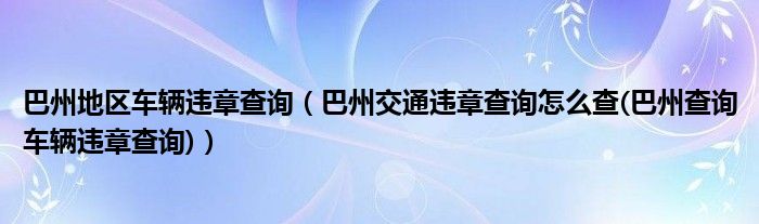 巴州地區(qū)車輛違章查詢(巴州交通違章查詢?cè)趺床?巴州查詢車輛違章查詢))