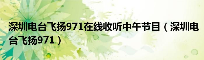 深圳電臺(tái)飛揚(yáng)971在線收聽中午節(jié)目(深圳電臺(tái)飛揚(yáng)971)