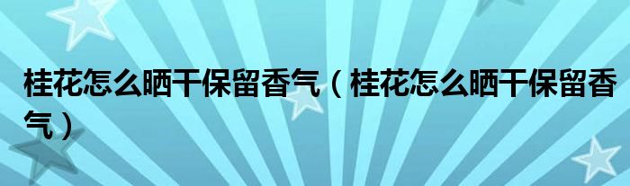 桂花怎么曬干保留香氣(桂花怎么曬干保留香氣)