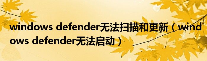 大家好,小飛來為大家解答以上問題,windows defender無法掃描和更新,windows defender無法啟動很多人還不知道,現(xiàn)在讓我們一起來看看吧!