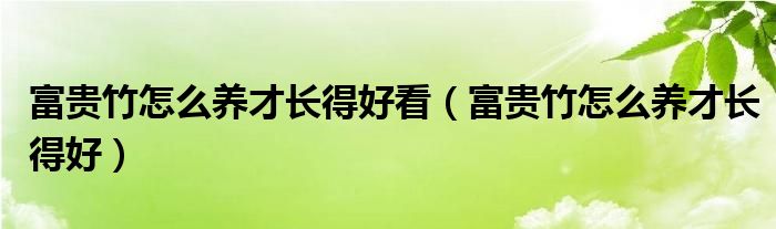 富貴竹怎么養(yǎng)才長得好看(富貴竹怎么養(yǎng)才長得好)