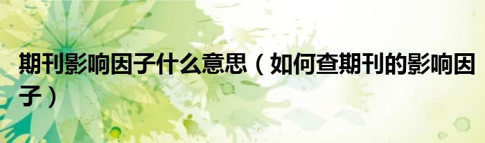 期刊影響因子什么意思(如何查期刊的影響因子)