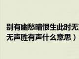 大家好,小聯(lián)來為大家解答以上的問題。別有幽愁暗恨生此時無聲勝有聲出自,別有幽愁暗恨生 此時無聲勝有聲什么意思這個很多人還不知道,現(xiàn)在 瀏覽全文>>