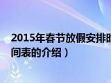 大家好,小夏來為大家解答以上的問題。2015年春節(jié)放假安排時間表,關(guān)于2015年春節(jié)放假安排時間表的介紹很多人還不知道,現(xiàn)在讓我們一起來看 瀏覽全文>>