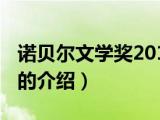 大家好,小夏來為大家解答以上的問題。諾貝爾文學(xué)獎(jiǎng)2012,關(guān)于諾貝爾文學(xué)獎(jiǎng)2012的介紹很多人還不知道,現(xiàn)在讓我們一起來看看吧!1、2017年 瀏覽全文>>