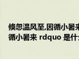 大家好,小聯(lián)來(lái)為大家解答以上的問題。倏忽溫風(fēng)至,因循小暑來(lái)是什么意思,ldquo 倏忽溫風(fēng)至 因循小暑來(lái) rdquo 是什么意思這個(gè)很多人還不 瀏覽全文>>