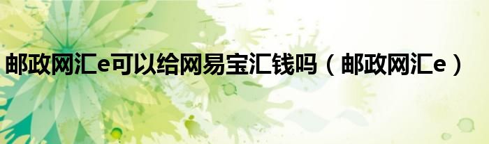 郵政網(wǎng)匯e可以給網(wǎng)易寶匯錢嗎(郵政網(wǎng)匯e)